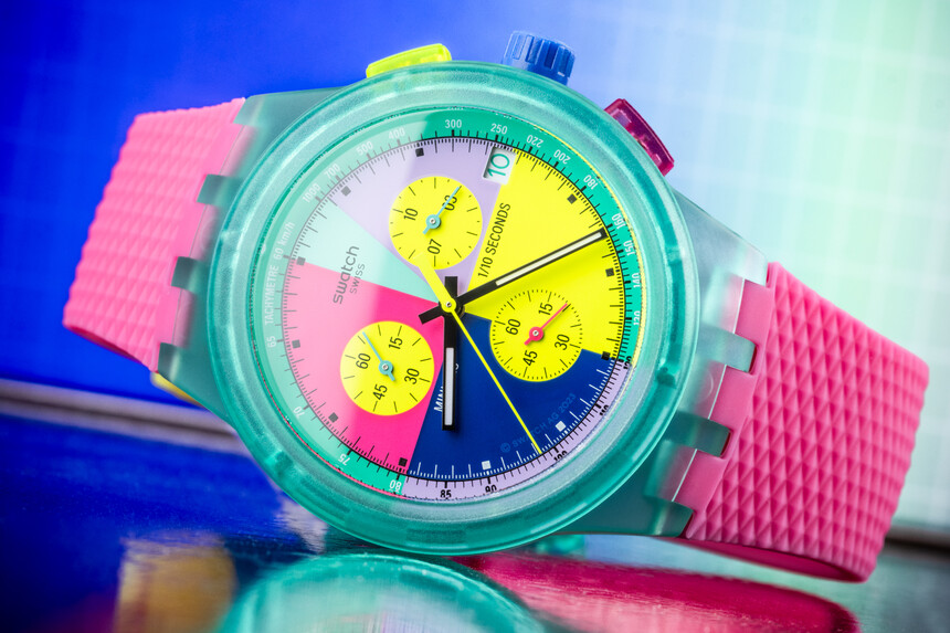 Für diese Kategorie haben wir eine Marke gewählt, die auf eine spannende, reiche Geschichte zurückblickt – und damit auf reichlich Designvorlagen. Die Swatch Neon Flash Arrow zeigt, wie farbige Swatch-Modelle in den Neunzigern aussahen.