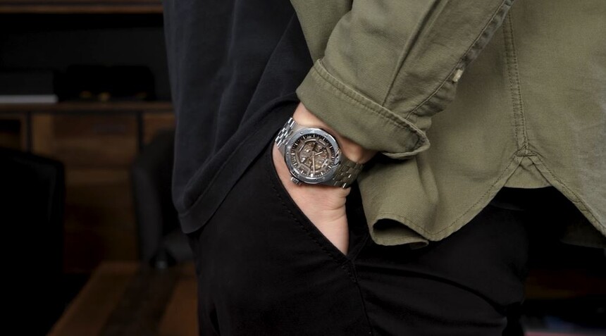 Damit verschwindet auch das potenzielle Problem eines integrierten Armbands, das die Uhr nicht nur optisch, sondern vor allem real in der Länge streckt. Die Lug-to-Lug-Länge beträgt nun 47,1 mm, die Breite inklusive Krone 44,2 mm. Und die Höhe? Nur 11,7 mm. So sitzen sie, trotz insgesamt recht robuster Präsenz, auch an kleineren Handgelenken.