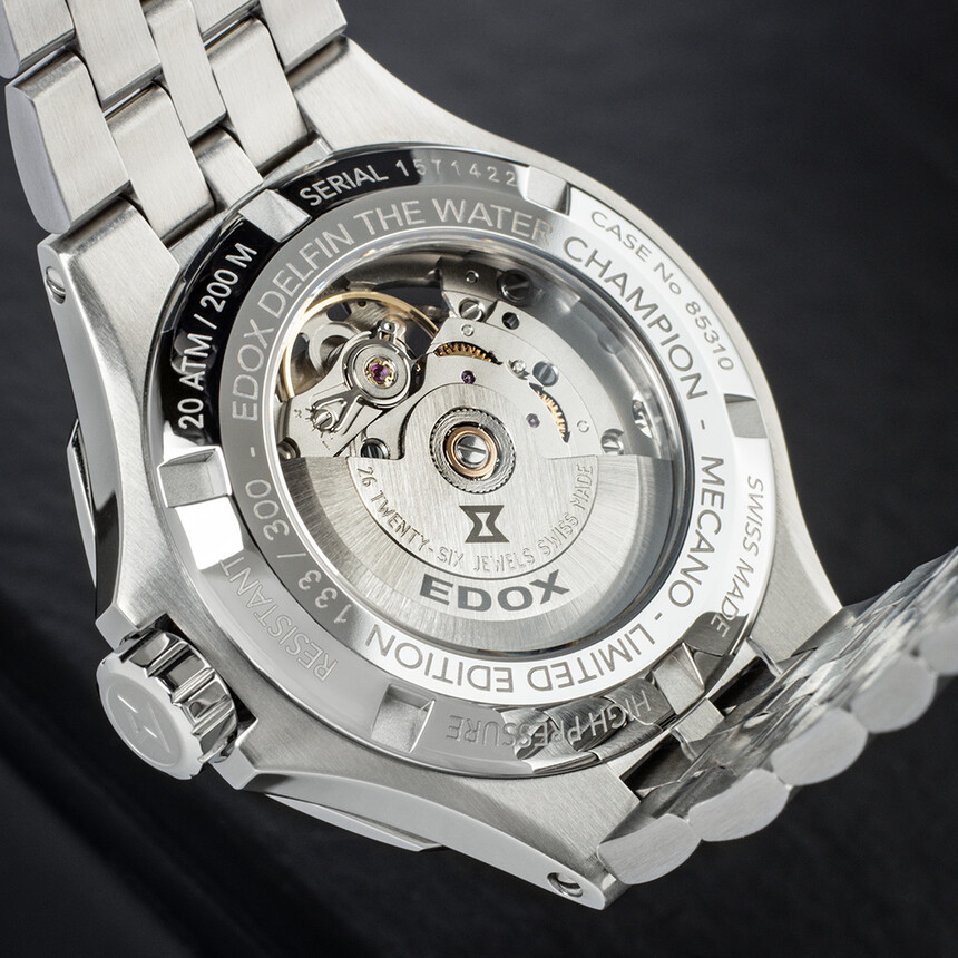 Dabei bleibt die Wasserdichtigkeit von 200 m erhalten – bei Skelettuhren keine Selbstverständlichkeit. Verwunderlich ist es allerdings nicht: Die Delfin-Modelle sind die bekannten Taucheruhren von Edox seit dem vergangenen Jahrhundert und schöpfen aus einem legitimen Tauchererbe.