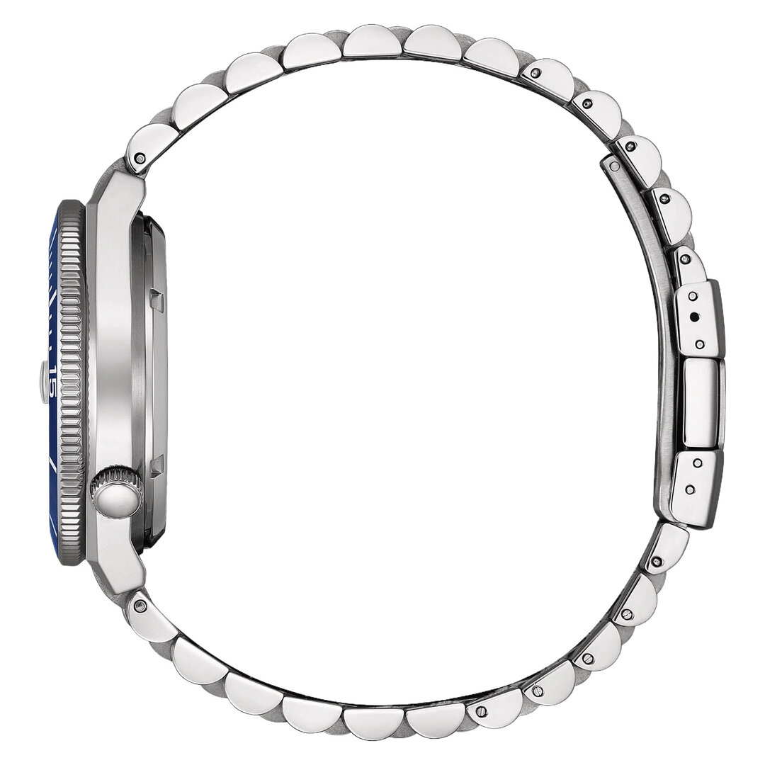 Mechanisch mit automatischem Aufzug. Citizen 8210, Gangreserve 45h, 21.600 BPH (3Hz), 21 Steine