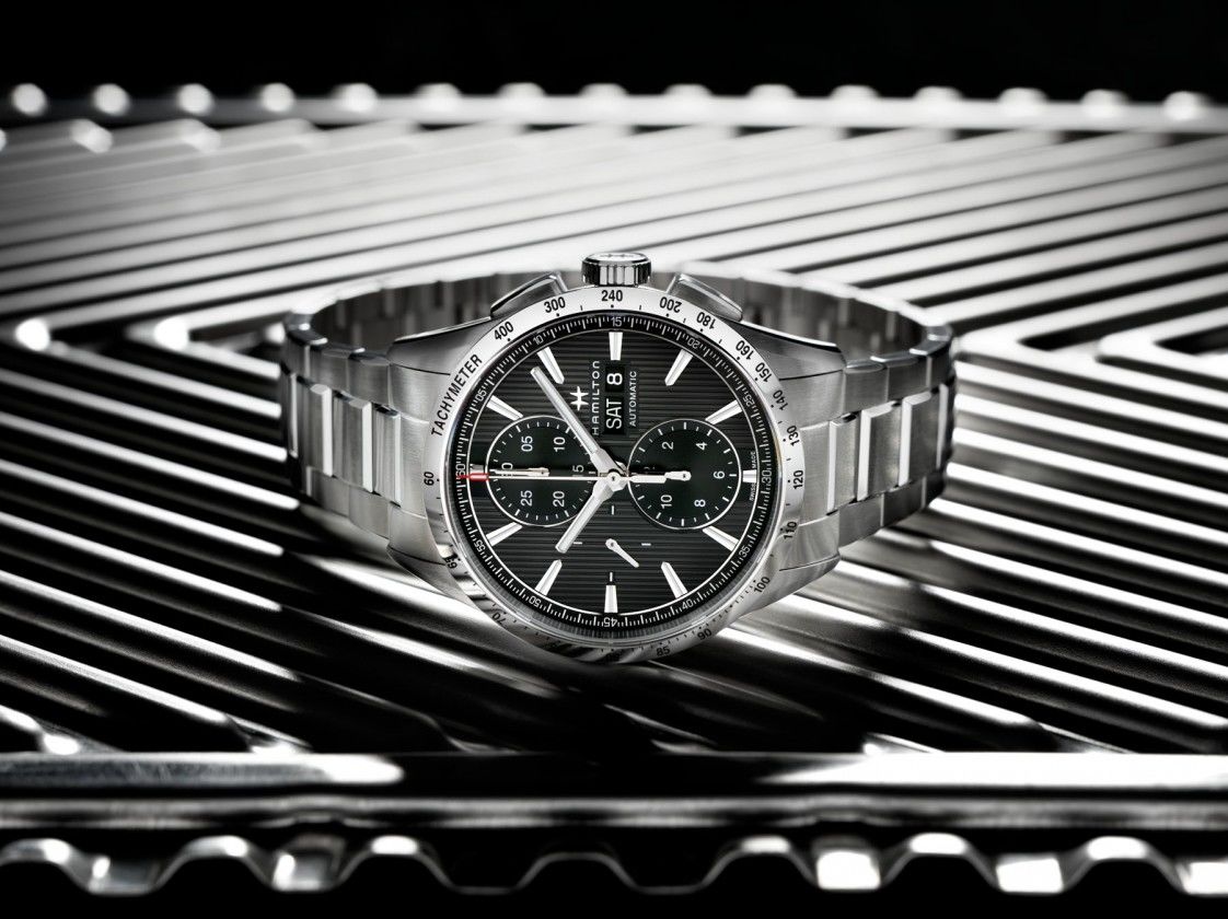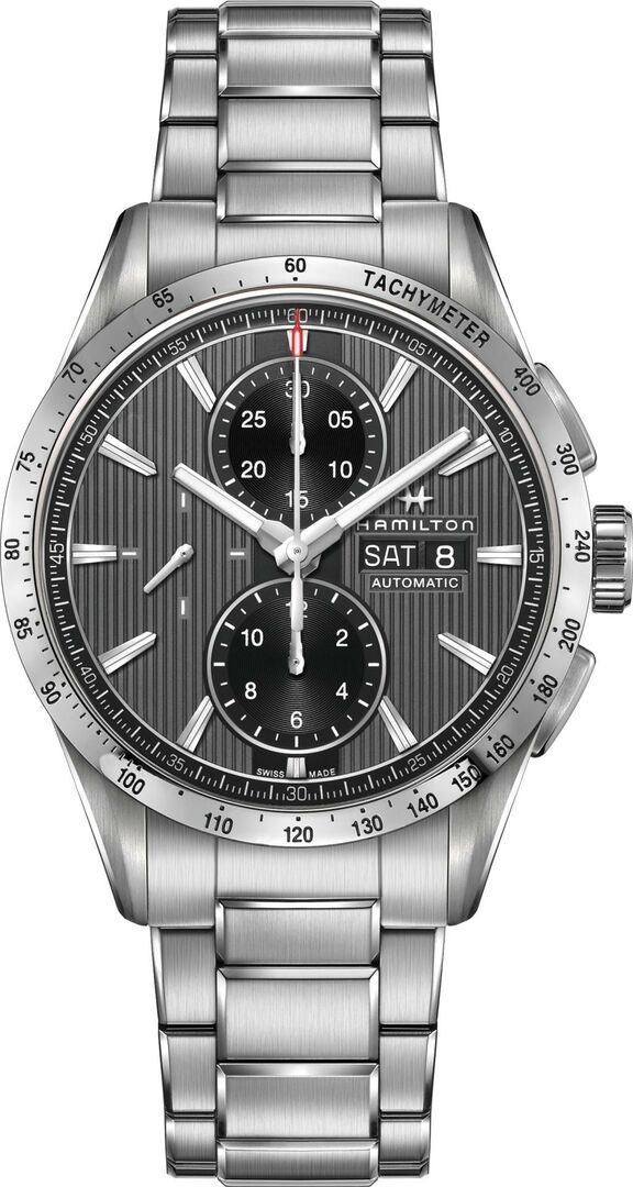 Mechanisch mit automatischem Aufzug. Hamilton H-21 gebaut auf ETA/Valjoux 7750, Gangreserve 60h, 28.800 BPH (4Hz), 25 Steine, Hacking
