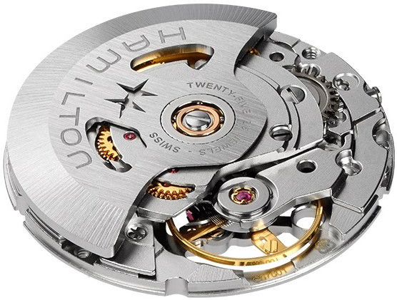 Mechanisch mit automatischem Aufzug. Hamilton H-10 gebaut auf ETA C07.611 gebaut auf ETA 2824-2, Gangreserve 80h, 21.600 BPH (3Hz), 25 Steine