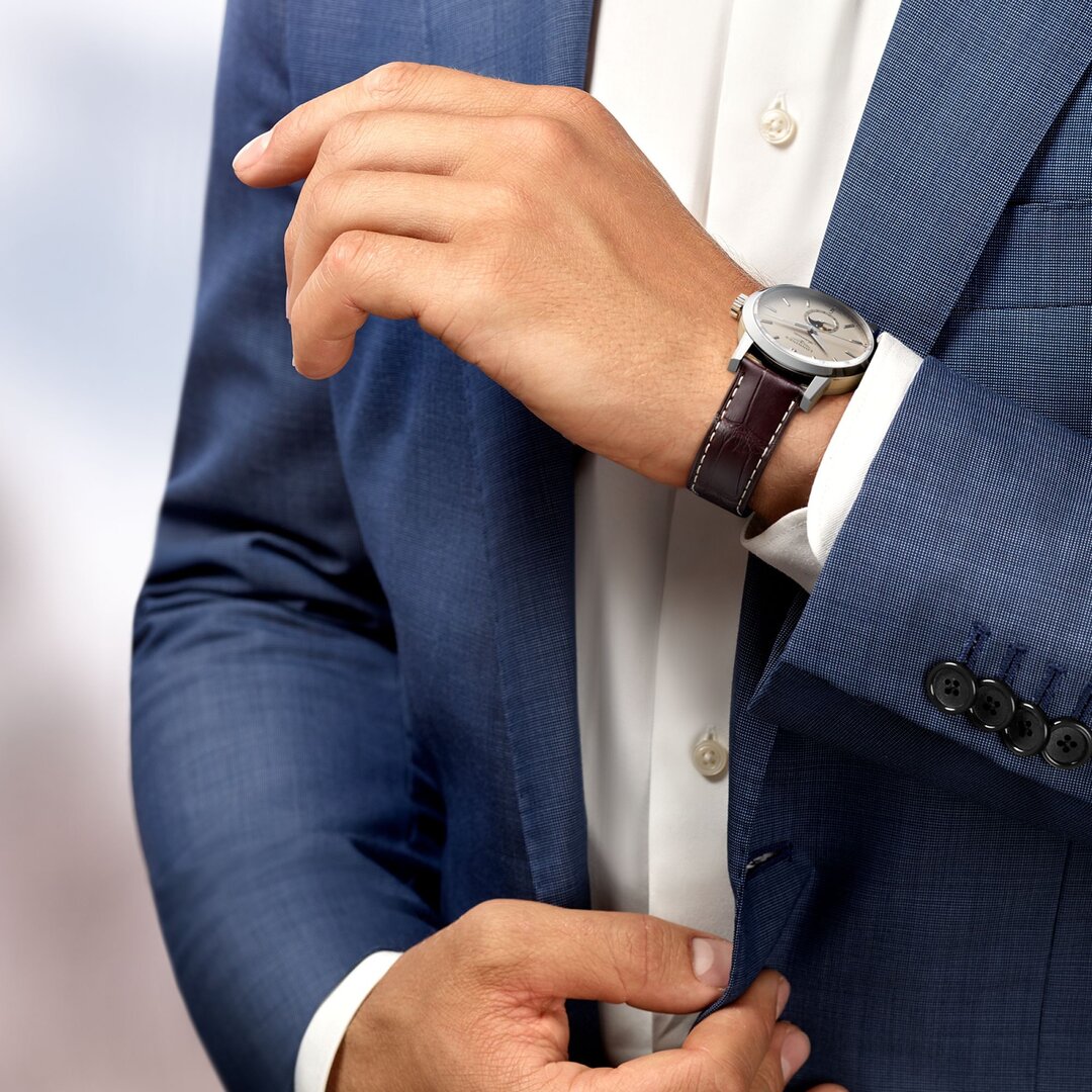 Herren Uhren - Leder riemen, Stahl gehäuse, Saphir glas. Alle technischen Daten finden Sie unten