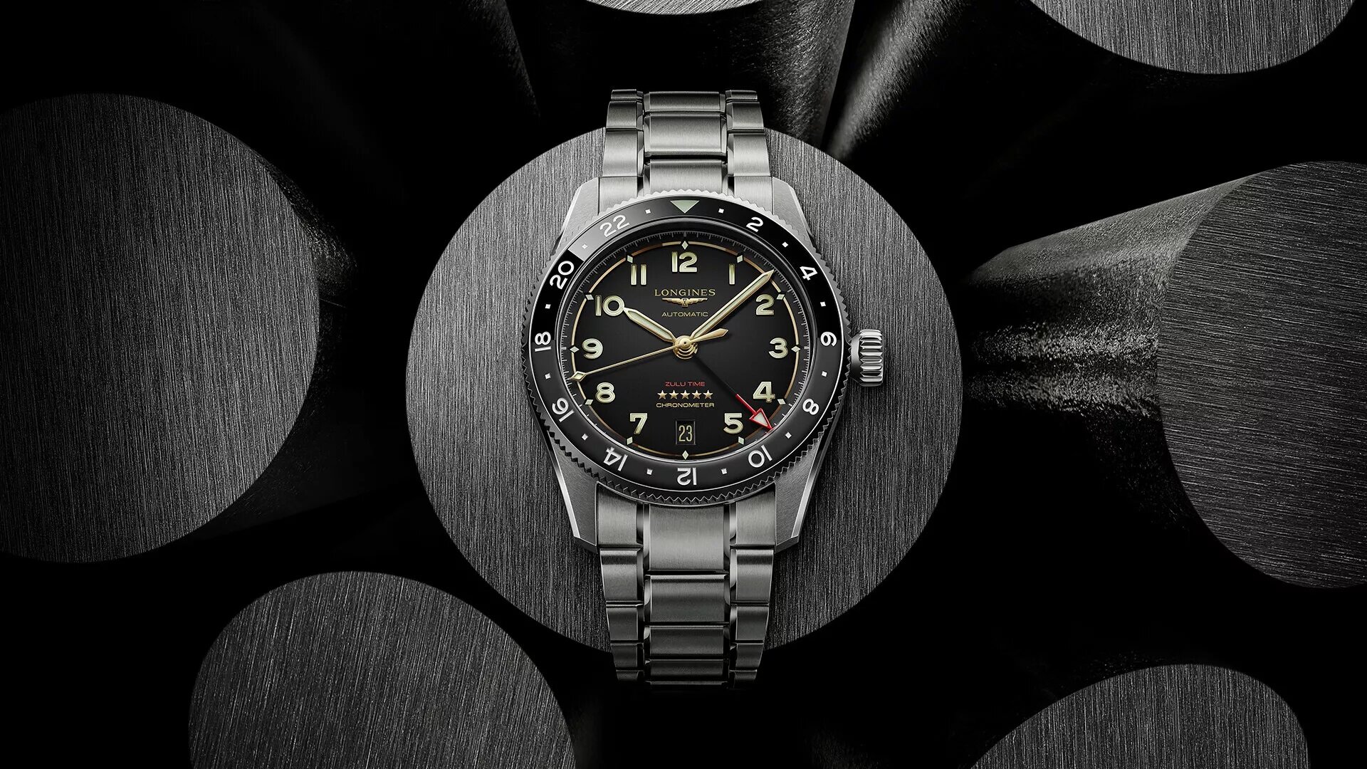 Uhren Longines Spirit Zulu Time Automatic Titanium GMT Chronometr L3.802.1.53.6