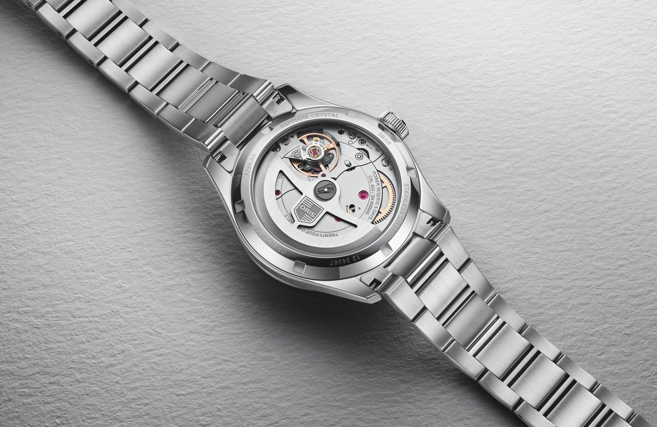 Mechanisch mit automatischem Aufzug. Oris 403, Gangreserve 120 hodinh, 28.800 BPH (4Hz), 21 Steine, Hacking