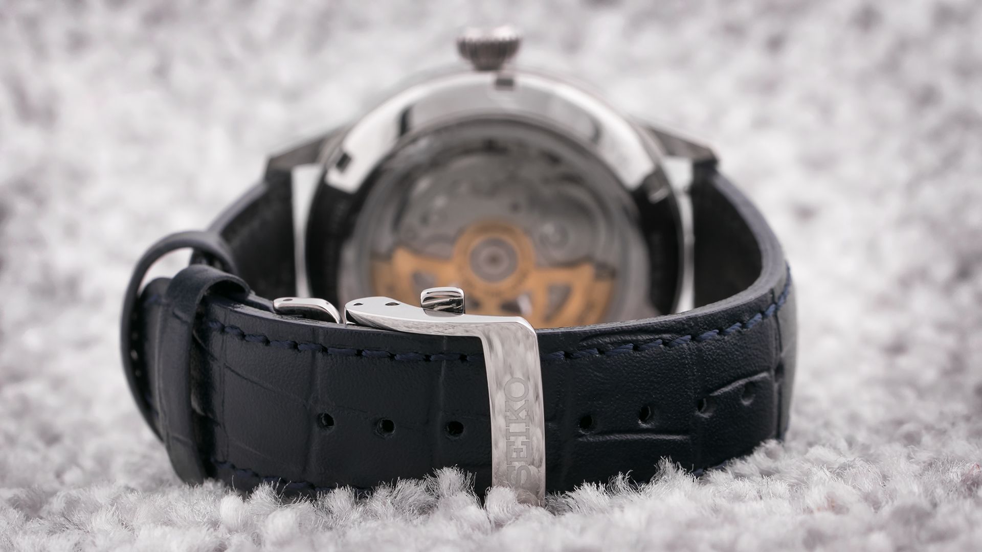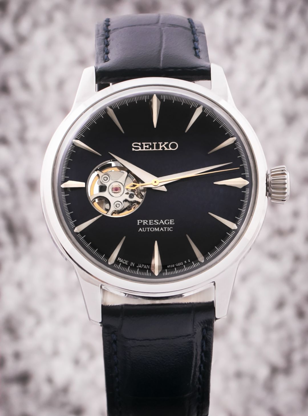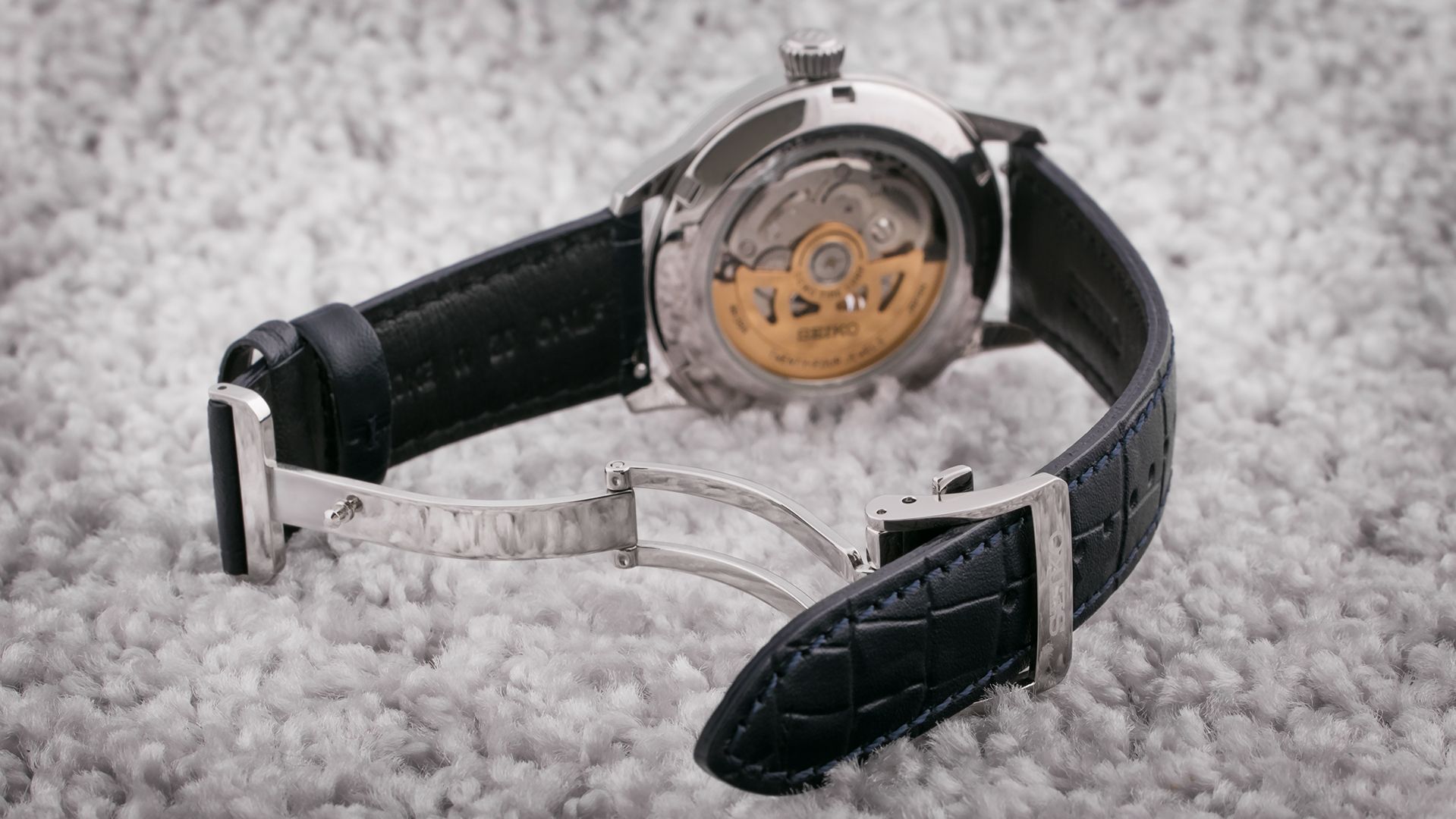 Mechanisch mit automatischem Aufzug. Seiko 4R38, Gangreserve 41h, 21.600 BPH (3Hz), 24 Steine, Hacking, Möglichkeit des Handaufzugs, Reversible Aufzug