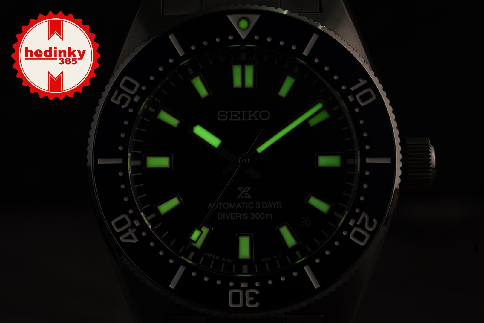Mechanisch mit automatischem Aufzug. Seiko 6R55, Gangreserve 72h, 21.600 BPH (3Hz), 24 Steine, Hacking, Möglichkeit des Handaufzugs